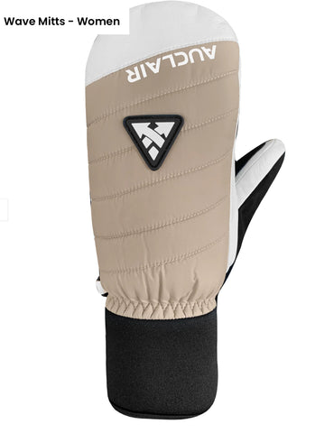 Our women's Wave mitt combines durable softshell with supple goat leather. It's filled with high-quality goose down, providing exceptional warmth without weight, and is conveniently packable. The mitt is both windproof and waterproof, offering excellent protection against harsh weather. The snug neoprene cuff retains heat. With a blend of style and warmth, this mitt is a must-have for winter.
