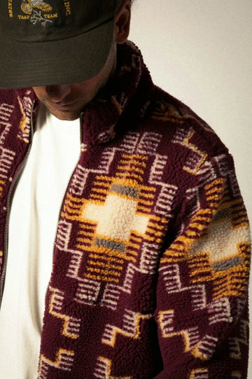 Meet your cold-weather essential: the Arctic Fleece Mock Neck Jacket. Its high pile sherpa texture delivers unmatched coziness, while the custom prints, inspired by vintage upholstery, make a bold style statement. Its an everyday functional piece that's a perfect layer for brisk mornings. Whether you're heading out for a casual outing or layering up for extra warmth, this jacket adds a unique touch to your wardrobe without sacrificing comfort.