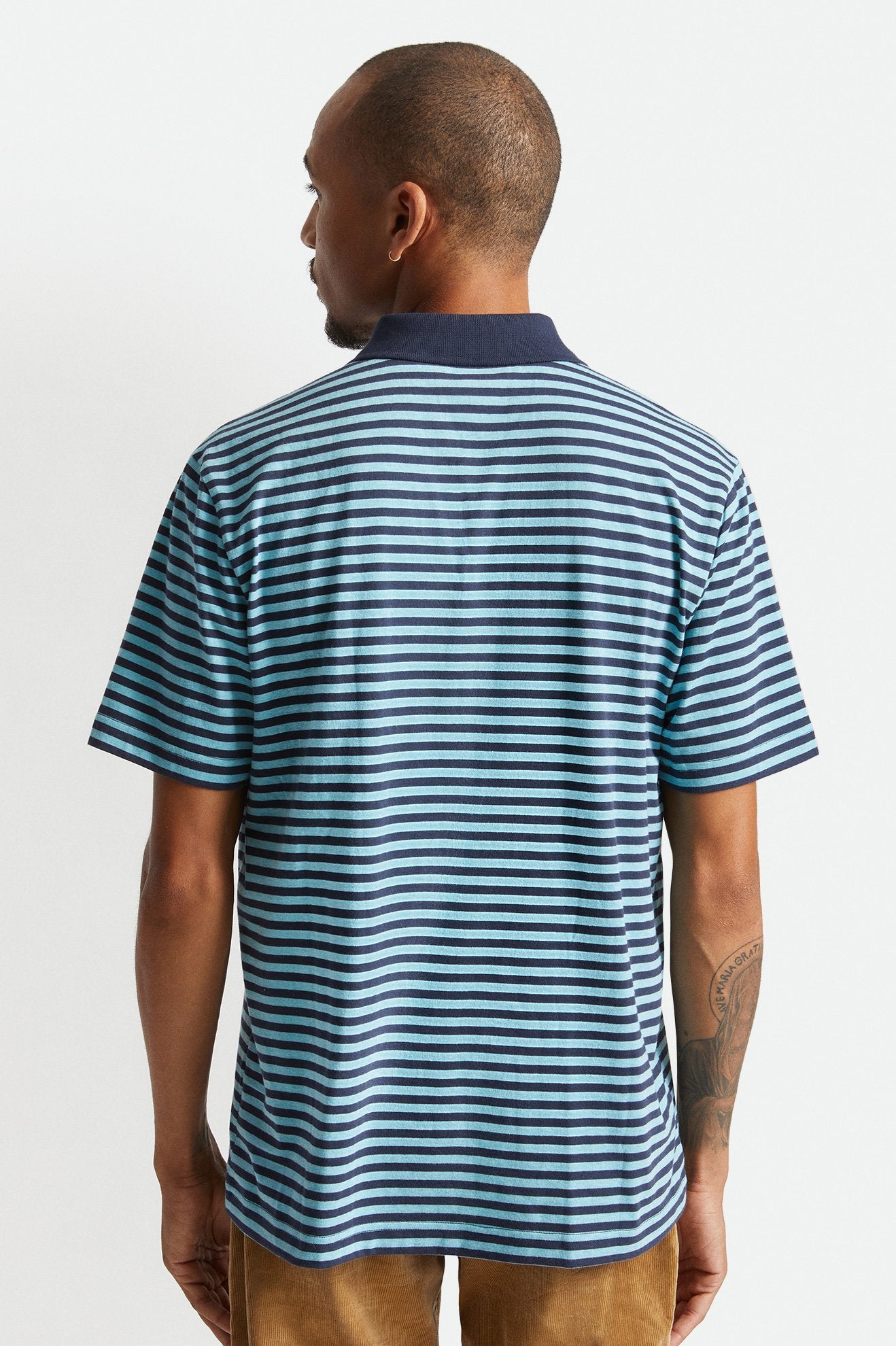 BRIXTON MICRO STRIPE S/S POLO KNIT HEATHER TEAL/NAVY