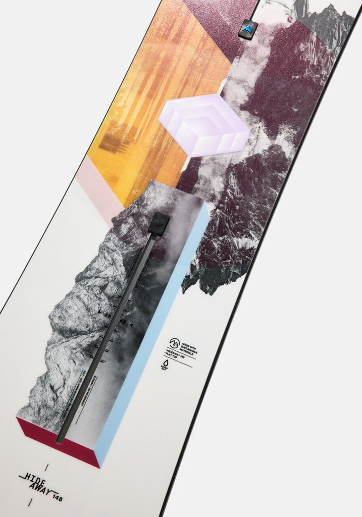 A little fun with a lot of function, the Burton Hideaway Snowboard is the perfect tool for taking a no-limits approach to the whole mountain. Plenty playful, a Flat Top Bend offers the forgiving freedom and stability to take on any terrain or condition. Its directional shape concentrates pop in the tail while providing plenty of float, flow, and control to rip any terrain or conditions. A sintered base keeps it fast, even if you have no time to wax it.
