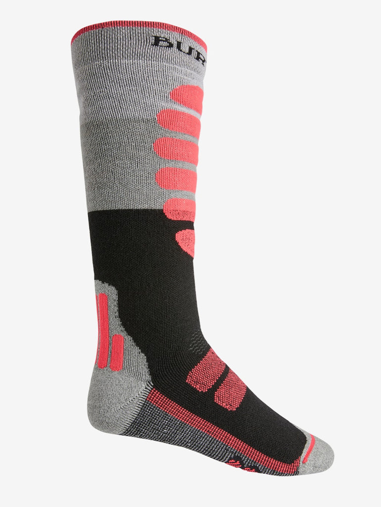 Midweight versatility combines with some seriously tech function in the men's Burton Performance + Midweight Sock. The key is in a combination of padding, compression, and venting, all in strategic zones to optimize your comfort, and allover moisture-wicking and quick-drying construction. Padded zones help alleviate pressure on your shins and around your heel, while venting releases excess heat and moisture to maintain comfort on hikes, hot laps, and long walks in the parking lot.