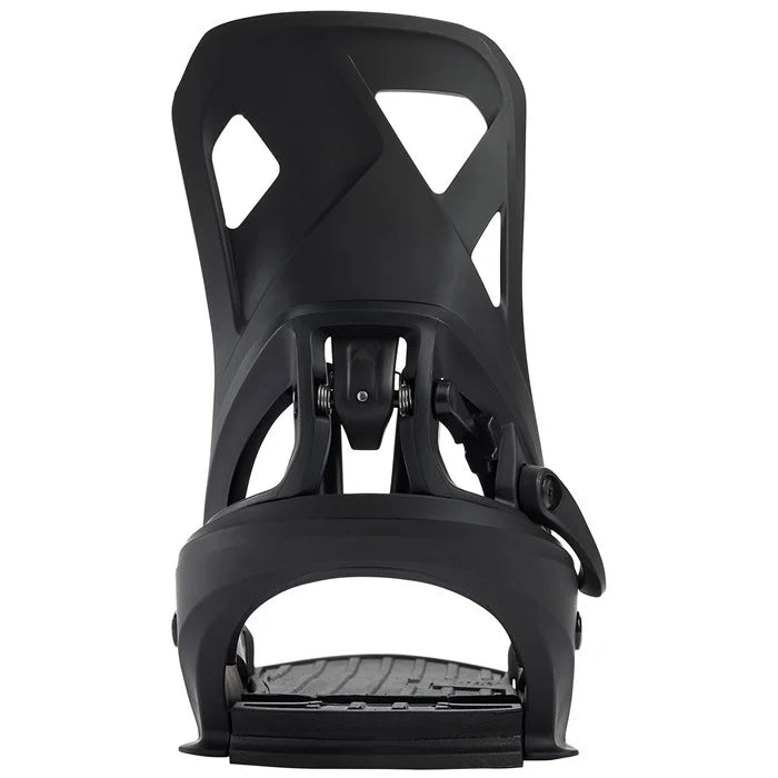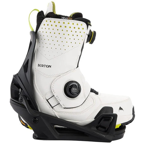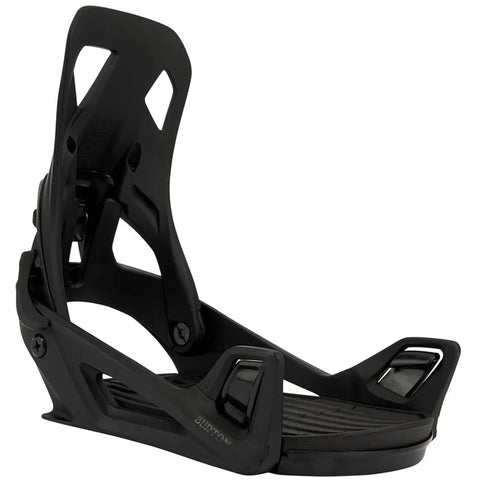 The women's Burton Step On® Re:Flex Snowboard Bindings offer an intuitive boot-to-binding connection for riders seeking convenience and performance. Three connection points, two at the toe and one at the heel, deliver unmatched simplicity, security, and board control. Toe hooks 2.0 offer responsive entry and a quick-release lever on the hi-back makes for a clean exit. It's universally compatible with all major snowboard mounting systems, including 4x4, 3D®, and The Channel®.