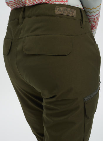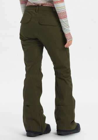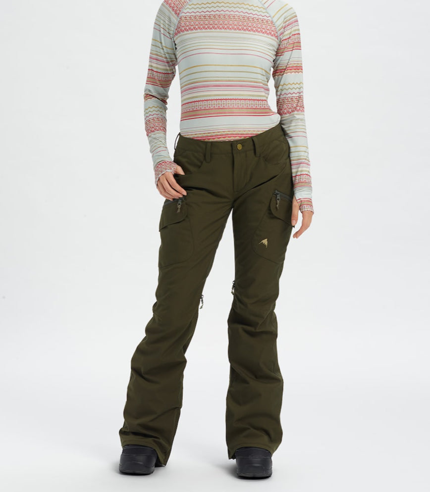 Slimmed up and tailored to fit like your favorite pair of jeans, the bestselling women's Burton Gloria Insulated Pant is a waterproof wonder that also includes a touch of stretch so there's no compromise in coverage or comfort. The silky soft stretch taffeta lining wicks away heat-robbing moisture and slides smoothly against your skin or base layers. DRYRIDE two-layer fabric provides proven waterproof performance and works with stretch polyester insulation to keep you both warm and dry. Meanwhile, inner thigh vents and Living Lining® thermo-regulating technology help maintain Climate Controlled Comfort.