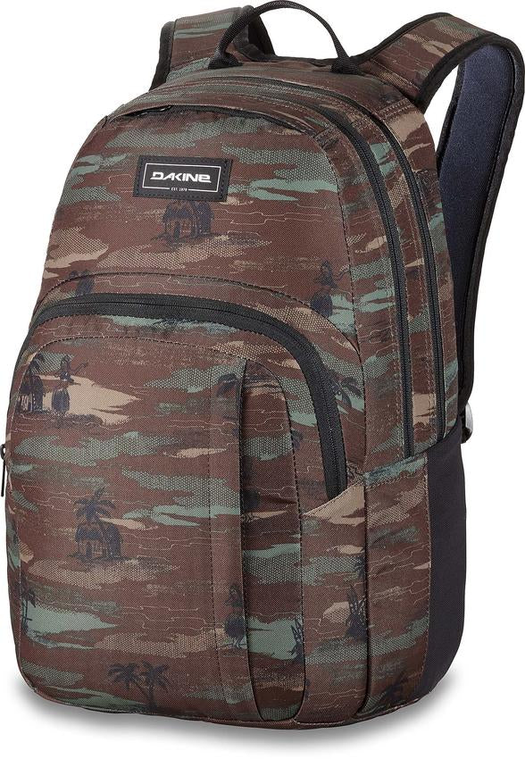 The Dakine CAMPUS M 25L Backpack has all you need for those days of running from class to the library. The S-curved backpanel and padded shoulder ensure comfort throughout the day, no matter how long you’re on the go. The adjustable sternum strap provides additional security and keeps everything in place when running for the bus. The main compartment has plenty of room for school books and a change of clothes, and features a padded sleeve for laptops up to 15”. The front organizer pocket is the perfect place to keep your essentials, while the fleece-lined front pocket keeps your glasses and phone safe from scratches without a case. The insulated cooler pocket is perfect for keeping your lunch fresh on the go.