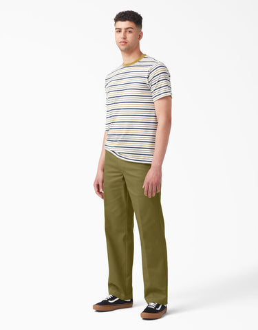 Dickies Skateboarding Twill Pants are built to ride. We took our original 874 pant and updated the design specifically for the skateboarder. The regular fit and high rise give you more room to make the most of your mobility. The interior features Dickies Skateboarding signature red detailing and a soft black herringbone pocket bags for added comfort. At front, the durable metal button closure won’t give out over time, maximizing the life of these skate pants.
