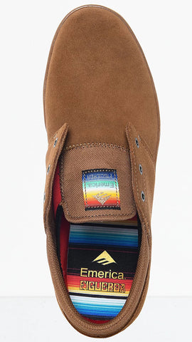 A very simple low-profile shoe, Justin Figueroa's pro models are now available in a brown and gum suede colorway/construction. Equipped with an internal elastic fit system that keep your feet securely in place allowing the use of the laces to be optional. These shoes have a durable suede upper paired well with Emerica's triangle tread on the bottom for traction and perfect skate performance grip.