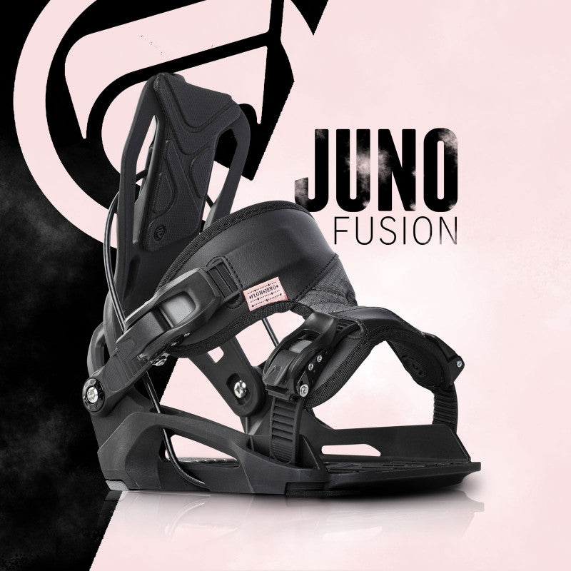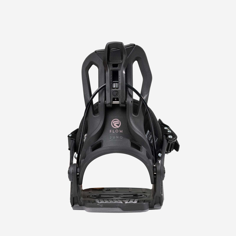 The Juno is a forgiving women’s binding with the added benefits of Flow’s speed entry system, perfect for entry-level to intermediate riders. Its flex pattern is the mellowest in our line, which means it doesn’t feel too restrictive when you’re strapped in, and it won’t kick your ass if you’re still working on your edge control. When you’re ready to tackle some side hits or venture into the park, the extra movement will also make it easier to launch tricks – with EVA cushioning in the heels helping to smooth out those landings.The Juno comes with a ComfortFit Fusion PowerStrap that delivers awesome support over the whole of your foot, with no pressure points and way less fatigue. It also features our exclusive Locking Slap Ratchets so you can set up the tension just how you like it, lock it off and enjoy rapid entry and exit via the reclining hiback. Less hassle, more riding.