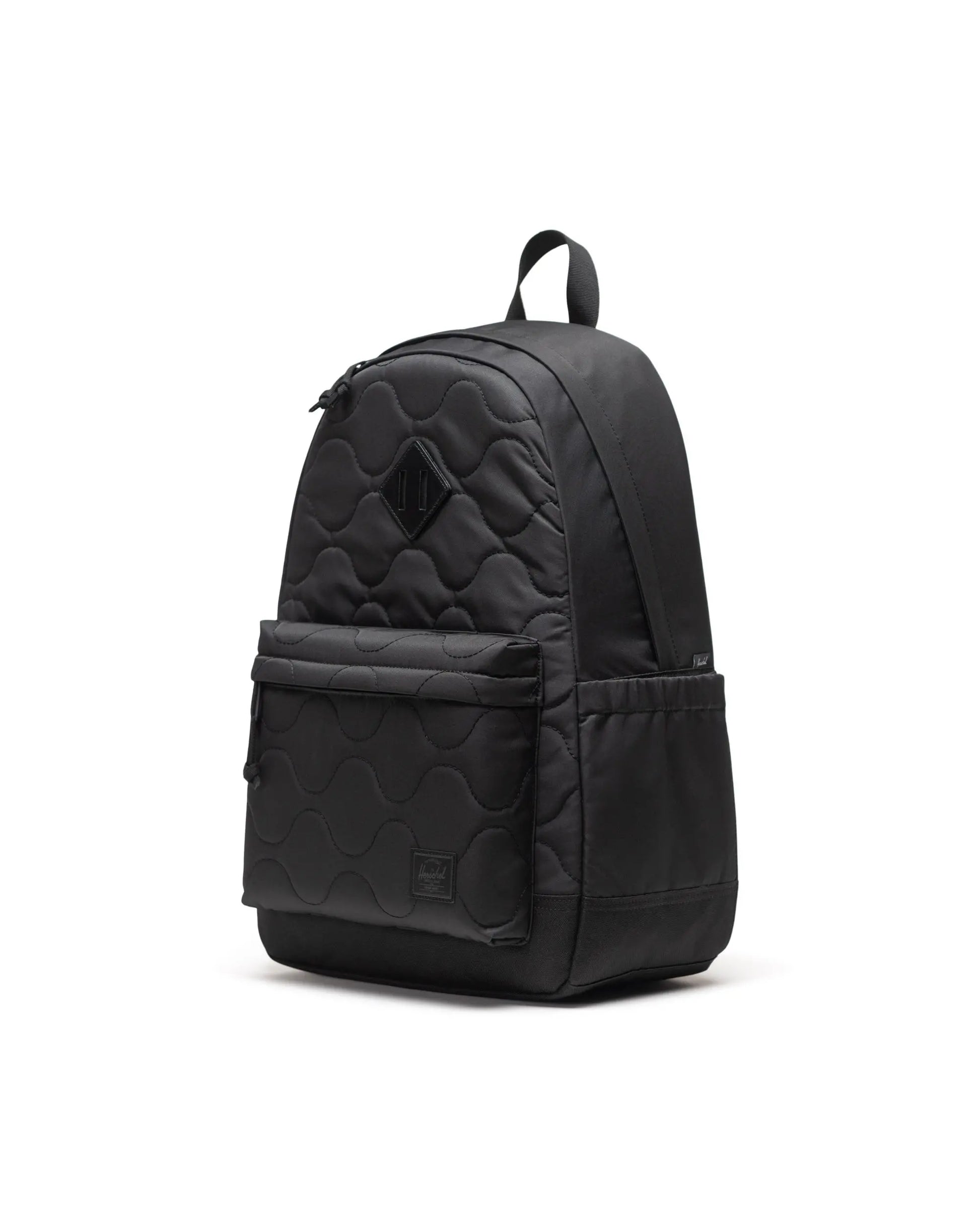 Timeless quilting. The Herschel Heritage™ Backpack is reimagined with lightly padded onion quilting inspired by tactical gear and vintage bomber jackets. It features contrast liner, a padded laptop sleeve and a front pocket organizer for small items.