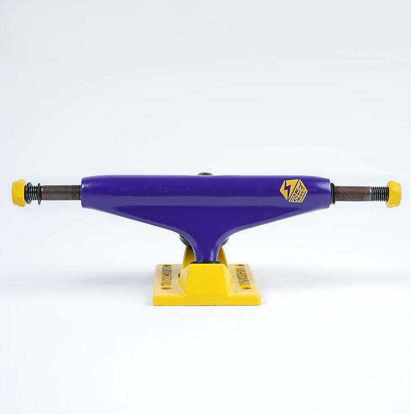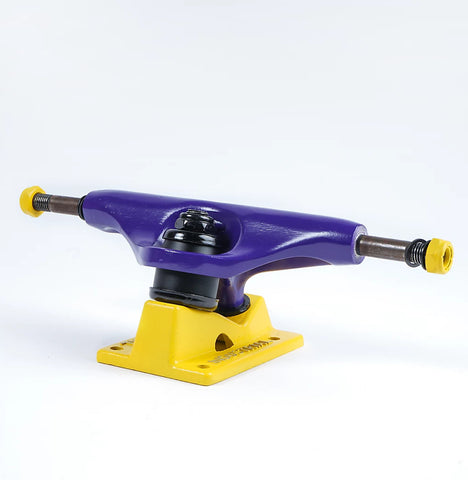 Show your love for vibrant colour by donning Industrial I4's 5.0" purple and yellow skateboard truck on your skateboard setup. This skateboard truck has a purple and yellow colourway for a blast of colour, while the reinforced hanger provides ample durability too! This truck is sold individually as well, so be sure to order 2 if you're setting up a fresh new complete!