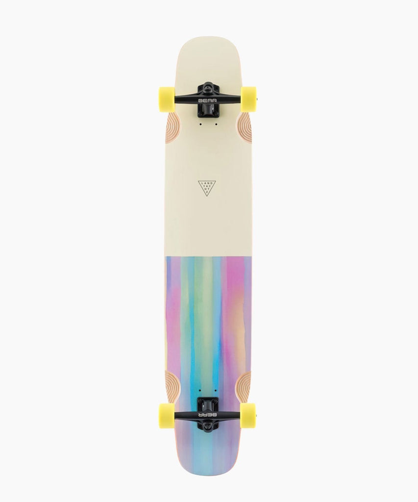 The Stratus 46 is a flexy longboard shape designed specifically for freestyle and longboard dancing. At 45.5" long by 9.25" wide, with griptape only where you need it, this board has plenty of space for all of your cross-stepping needs. The Stratus Watercolour uses an 8 ply Canadian Maple construction to give a nice medium flex feel that returns lots of energy out of each turn but still gives you a confident feeling when landing tricks. The shape has been modified slightly this year to work with the new Grizzly Gen 6 180mm trucks while still having tons of pop. The Stratus rolls on 63mm Fatty Hawgs to keep the complete light and let you run your trucks nice and loose without worrying about wheelbite.
