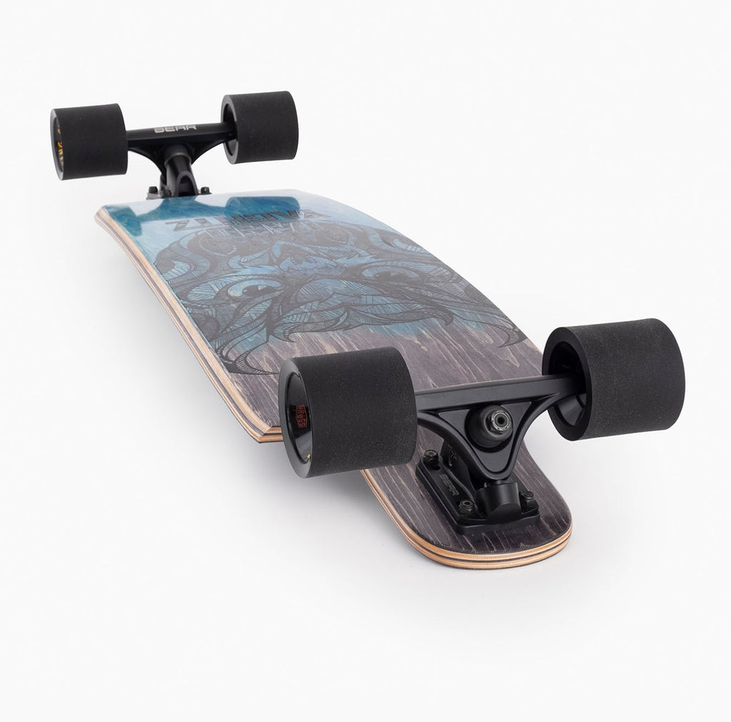 If you’re looking for effortless cruising and smooth carving, the Top Cat is an ideal option. It offers a low to the ground responsive ride, whether you’re flowing through city streets, navigating mellow hills, or carving bike paths, this board delivers a surfy, playful feel with just the right amount of control. Its extreme rocker and comfortable concave keep your feet locked in, making every ride a dream. Perfect for beginners and experienced riders alike who want a board that’s fun, easy to ride, and built for everyday sessions.