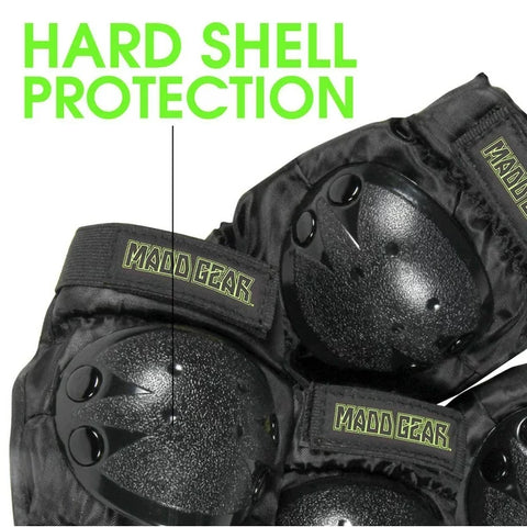 Learning to Scoot, Skate or Inline can be an intimidating and a scary time for many young riders. The Madd Gear Junior Elbow and Kneepad Set allows kids 5 Years & Up to practice safely with an abrasion resistant hard outer shell and soft EVA foam padding. The velcro straps keep the pads in place so you can ride with peace of mind!