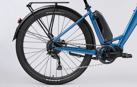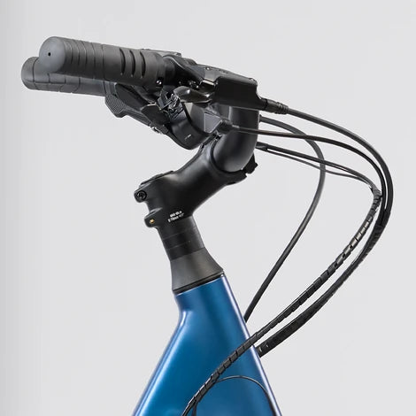 - Streamlined cockpit with compact display, dropper post, gear shifter, and integrated lighting.