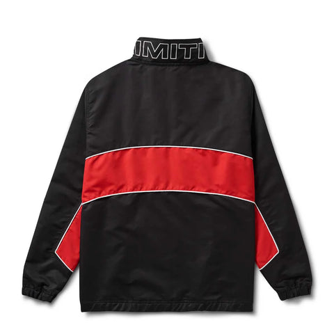Shell: 100% Nylon taslon / Liner: 100% Polyester / Contrast color-block panels / Customrubber label / Chest embroidery / Satin embroidery / Printed artwork on collar / Custom front zippers / Pipping detail