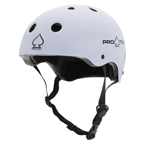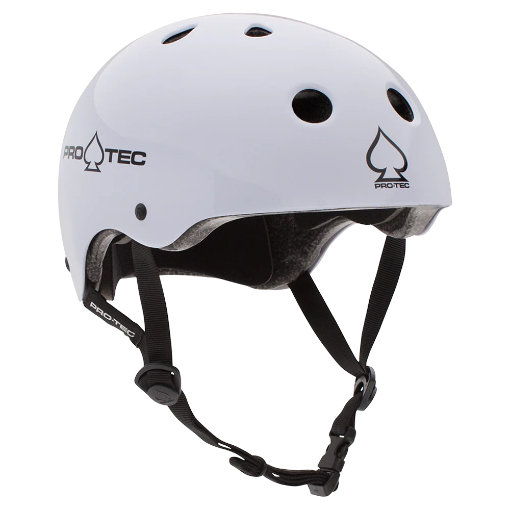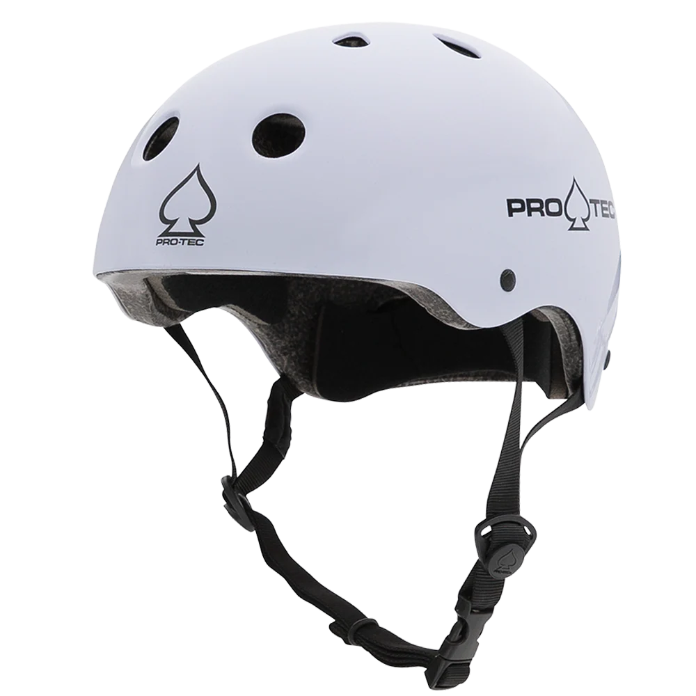 A Pro-Tec certified skate helmet is a safety helmet with a durable ABS shell and an EPS foam liner for impact protection. These helmets are multi-certified to meet safety standards like U.S. CPSC and ASTM, and feature a comfortable fit with adjustable straps, foam padding, and ventilation holeS.