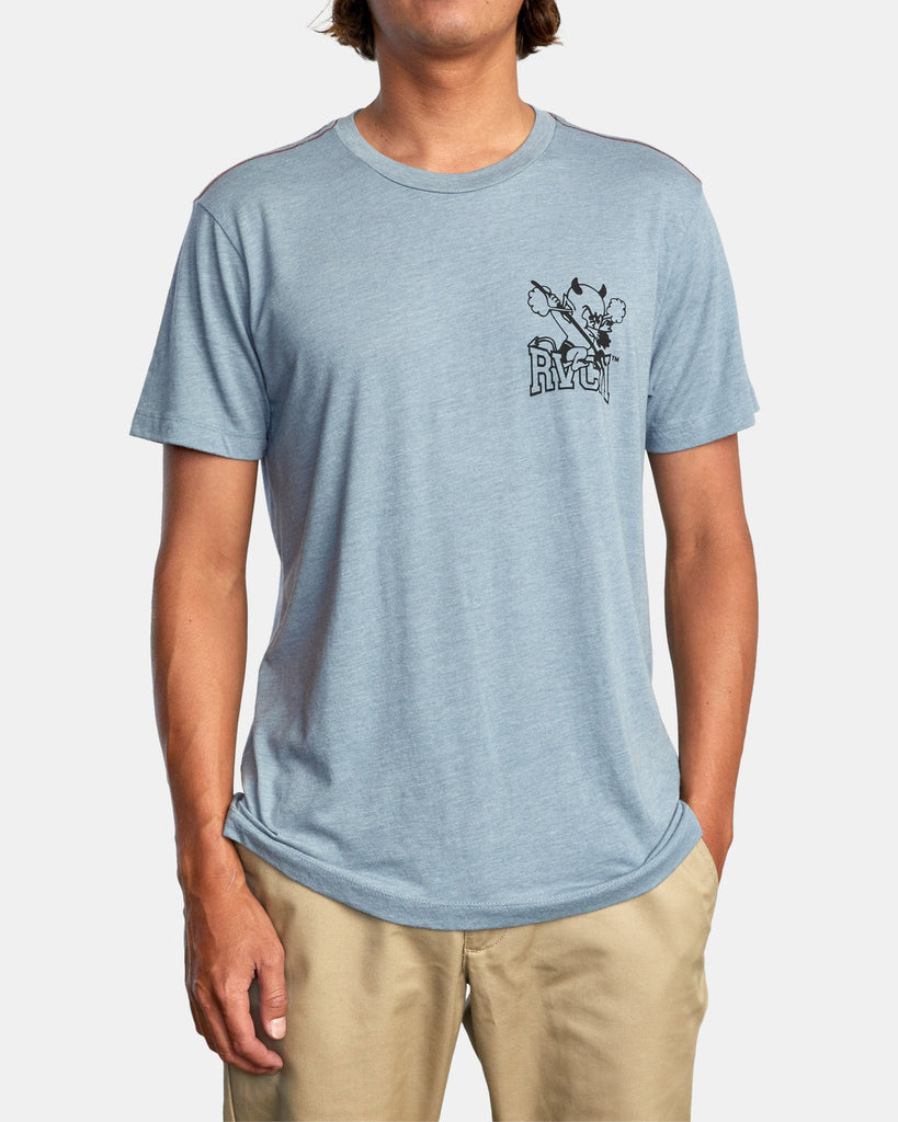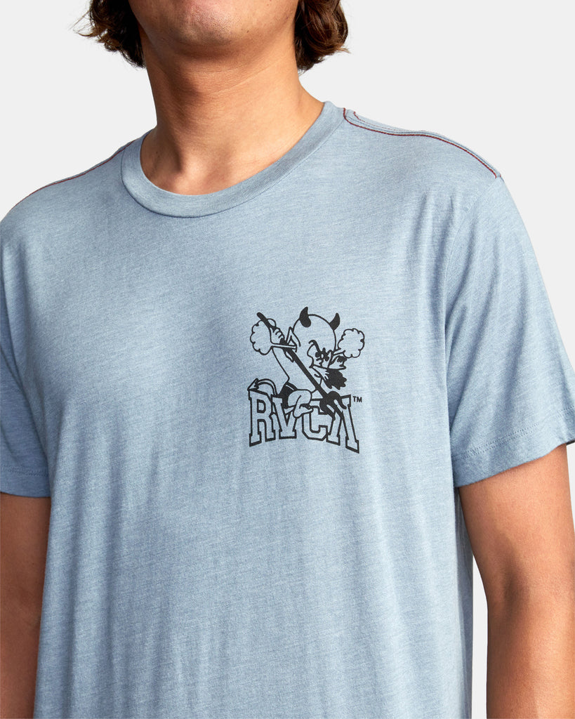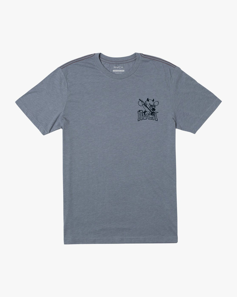 LOOK FLY WITHOUT THE EFFORT IN THE RVCA DEVILS SHORT SLEEVE TEE, MADE FROM VINTAGE DYED COTTON BLENDED FABRIC FOR A THROWBACK LOOK AND FEEL. FEATURING CUSTOM ARTWORK SCREEN PRINTS AT THE CHEST, THIS MEN’S SHORT SLEEVE TEE OFFERS A SLIM FIT THROUGHOUT, AND IS FINISHED OFF WITH A SCREENED INSIDE NECK AND OUR SIGNATURE RVCA RED STITCH SEAL.
