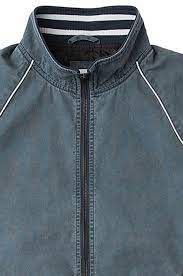 JACKET WITH A HEAVY ENZYME STONE WASH. IT HAS CONTRAST PIPING AT THE ARMHOLES,