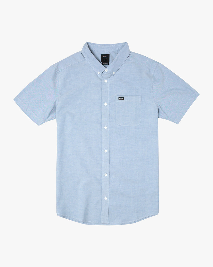 The RVCA That'll Do Stretch Men's Short Sleeve Shirt delivers classic lines alongside active function. Adding to a stretch oxford construction, the premium slim fit men's shirt offers up signature tones, bringing an original feel to your everyday essential.