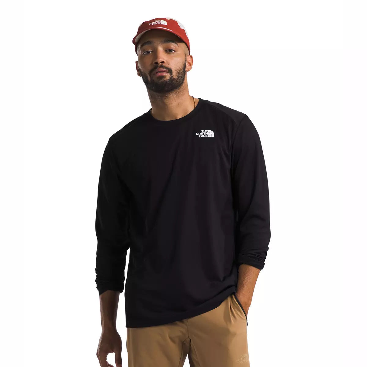 Revitalize you outdoor wardrobe with the men's Shadow Long Sleeve Top from The North Face. Its breathable mesh fabric keeps you comfy during tough treks, so you can stay focused on the beauty around you. With UPF 40+ fabric, it's like your personal shield against the sun's rays, especially on those exposed mountain paths. The long sleeves add an extra layer of protection against UV rays, making it perfect for all kinds of outdoor endeavours.