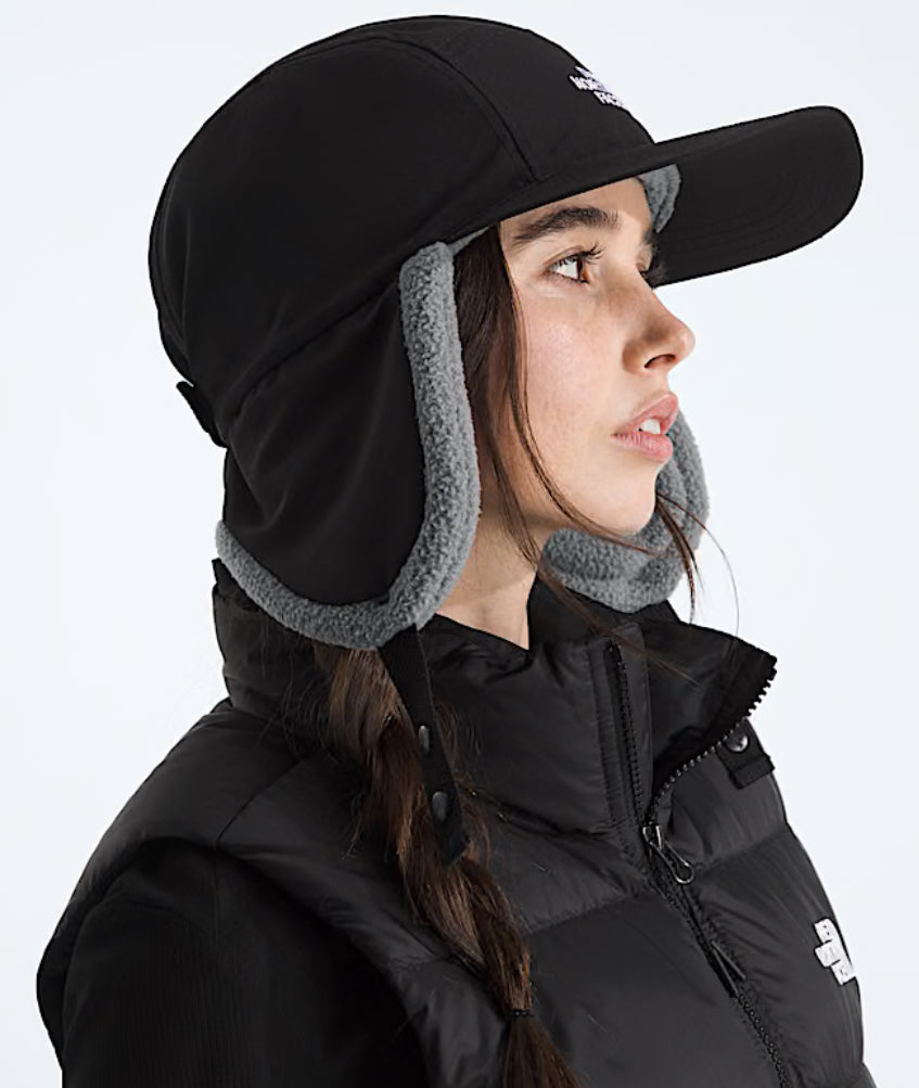 Soft, 100% recycled high-pile fleece. Water-repellent finish. The Yumiori Trapper Hat combines outdoor functionality with everyday comfort. It features warm ear flaps and an adjustable webbing strap to help you get the perfect fit.