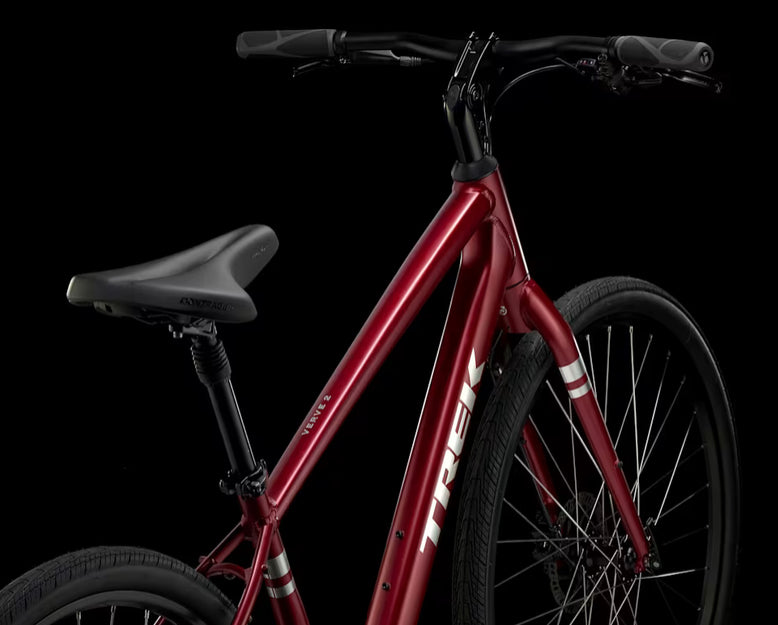 Verve 2 Disc is a hybrid bike designed for comfort and fun on commutes, cruises, and fitness rides. It has a lot of thoughtful features that make for a confident and comfortable ride, like a suspension seatpost, padded saddle, and disc brakes that perform in any weather.