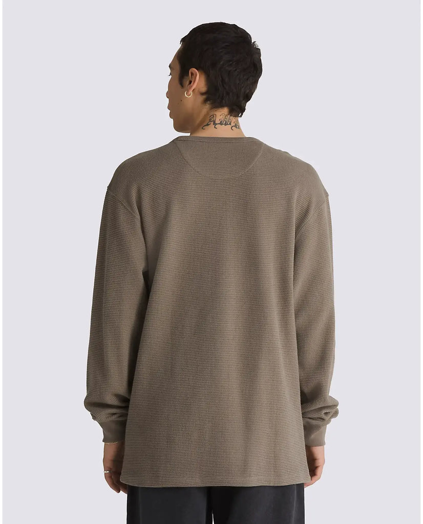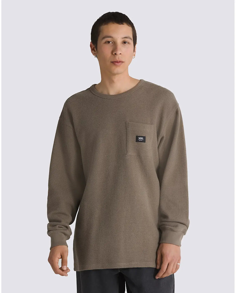 Warm up on cold days in the Alder Pocket Long Sleeve Thermal Shirt, a long sleeve crewneck waffle thermal T-shirt made from a heavier weight cotton with a woven label on the front chest pocket for that Vans®-style flare