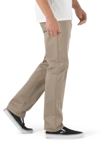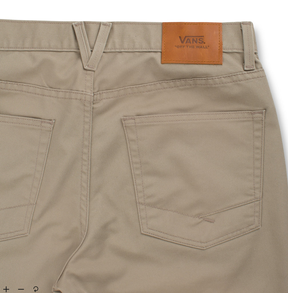 The AVE Covina 5 Pocket Slim Straight Twill Pant, part of the Anthony Van Engelen signature collection, is made with an improved, soft cotton/poly blend and features classic 5-pocket styling. The right front hand pocket includes a coin pocket, and the new embroidered “Drop V” bartacks provide reinforcement. Plus, new details bring plenty of “Off The Wall” style to this everyday twill pant, including the new “V” belt loop detail on the back waistband, checkerboard twill taping on the internal fly facing, a leather logo patch, and the new flag label sewn internally to the hem seam for added branding when legs are cuffed. Model is 6 feet tall and wearing a size 32. • Anthony Van Engelen signature collection • Fit Type: Slim Straight - Slim through the hip and thigh, and straight from knee to ankle with a slightly low rise. • Durable cotton/poly blend made with 60% cotton, 38% polyester, and 2% LYCRA® • Classic 5-pocket styling • Embroidered “Drop V” bartacks reinforce critical stress areas • Checkerboard twill taping on the internal fly facing • Leg opening: 16 inches