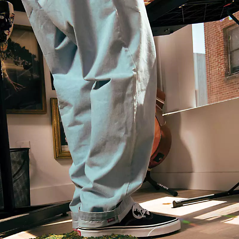 Fit, style, and durability—the Authentic Chino Fit. We put a lot of thought into our pants, so you don’t have to. A versatile chino pant that delivers style and functionality at an affordable price, the Authentic Chino Baggy Pant lets you stop worrying about your gear and focus on your skating. Built with a rigid cotton twill fabrication, this baggy chino pant features classic chino front hand pockets with a new coin pocket placement on the right, rear welt pockets with button closures, and embroidered Drop V bartacks for reinforcement with a heritage twist. Plus, new details bring plenty of Off The Wall style to this skate essential, including the new “V” belt loop detail on the back waistband, the new checkerboard twill taping on the internal fly facing, and the new flag label sewn internally to the hem seam for added branding when legs are cuffed.