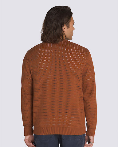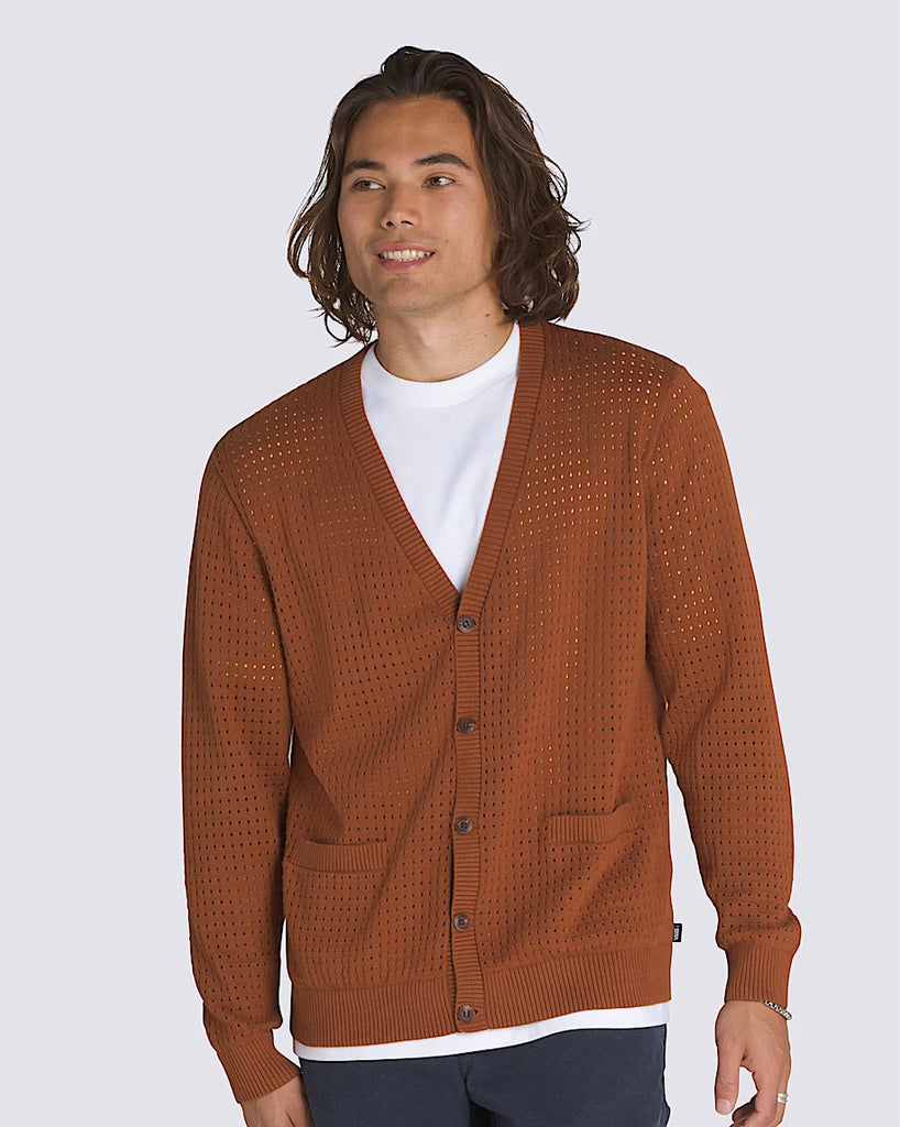 The Griffin Pointelle Cardigan is a cotton button down cardigan with front welt pockets, knit with small eyelets for a lacy effect. It features a loose fit, making it perfect for layering.
