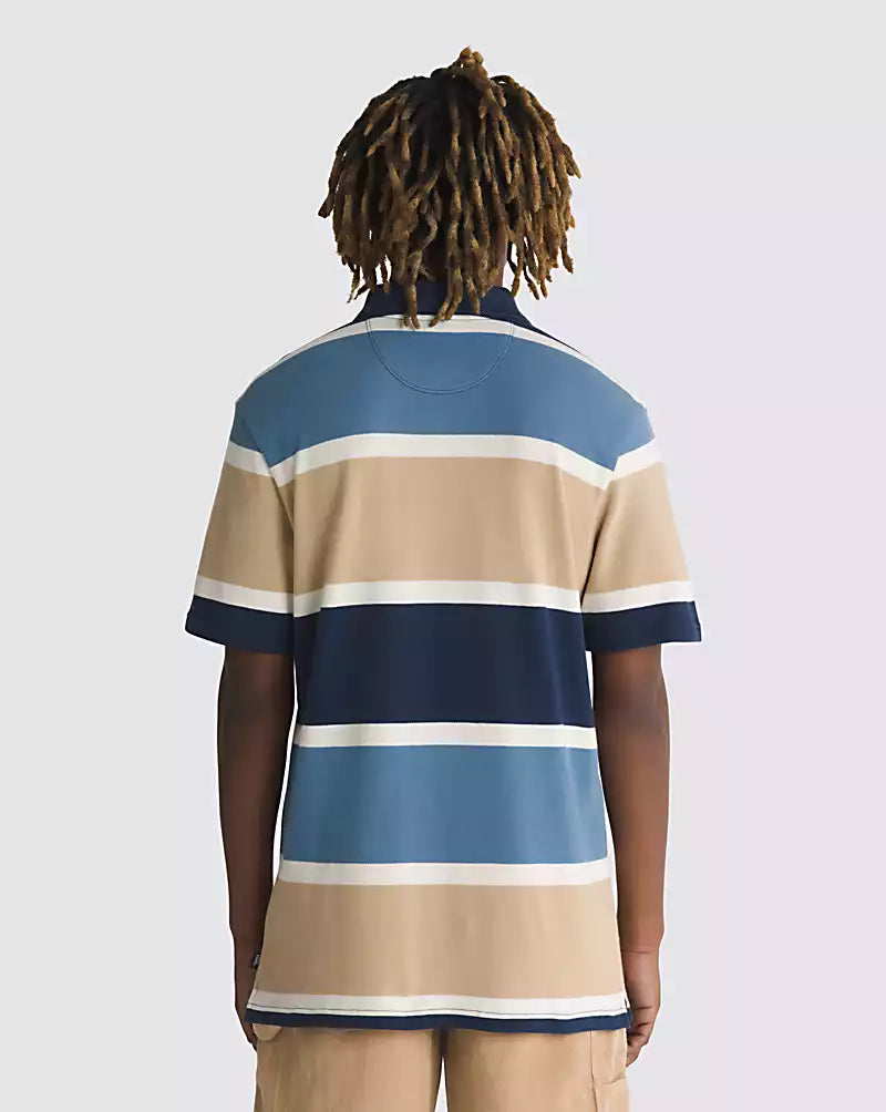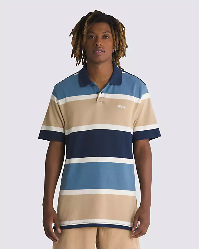 The Halicrest Stripe Polo Shirt is a pique short sleeve polo shirt that featuresyard dyed stripes and embroidered logo on the left chest.