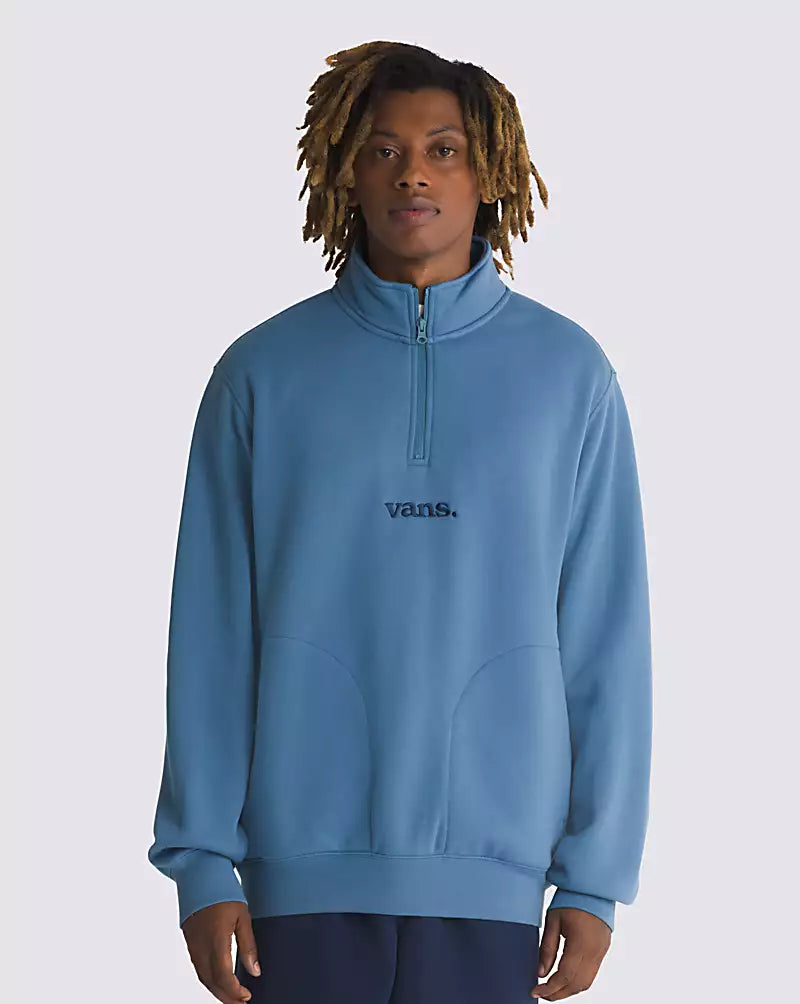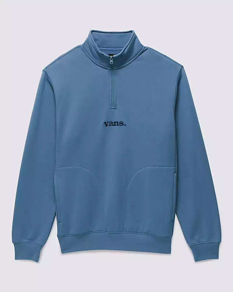 The Lowered Quarter Zip Pullover is a long sleeve pullover that's perfect for those cooler days and/or night skate sessions. This long sleeve pullover features a quarter zip front, an embroidered Vans logo in the middle chest, and front pockets.