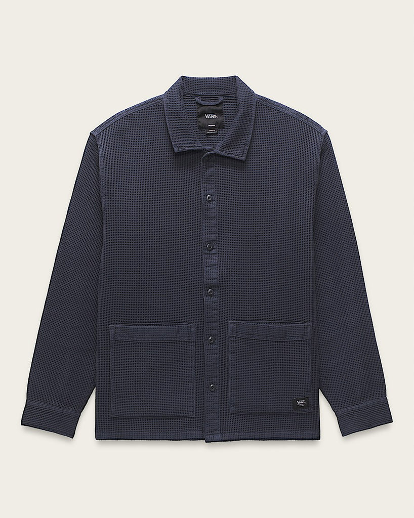 Skate through the seasons in the Maywood Dobby Shacket, built with cotton dobby fabrication for a subtle geometric pattern. It also features double layer hand pockets with a woven Vans® flag label.