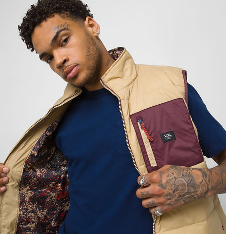 Offering protection from the elements and styling that only Vans can deliver, the Prospect MTE-1 Vest is a woven nylon ciré vest built for adventure. Featuring 1K DWR coating, 10 oz Clomax® Haloball fill for warmth, and a classic mock neck, this all-weather vest is ideal for the season’s in-between days, and can be layered when the day calls for it. Model is 6 feet tall and wearing a size Medium.