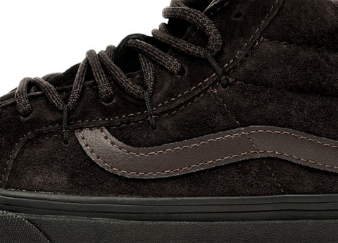 The Sk8-MID MTE revamps the legendary Vans high top with additions designed for the elements. Premium weather-resistant leather uppers, warm linings, and a heat retention layer between sockliner and outsole keep feet warm and dry while the newly-constructed vulcanized lug outsole takes advantage of 20 years of snow boot history for maximum traction. The Sk8-MID MTE also features heel pull tabs, re-enforced toecaps to withstand repeated wear, and padded collars for support and flexibility.