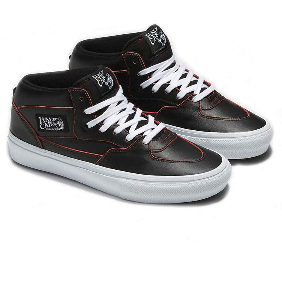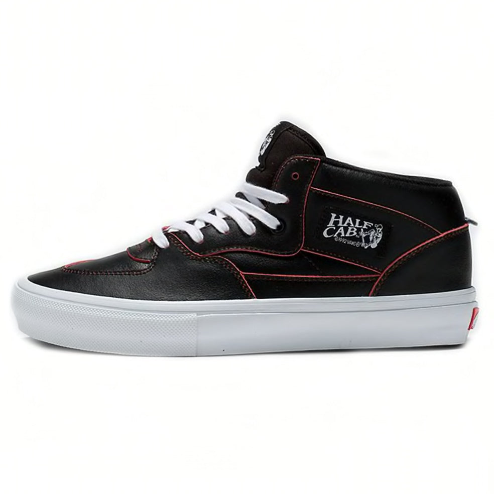 From Vans comes the Skate Half Cab Wearaway black and orange skate shoes. These Steve Caballero pro model shoes are constructed with black leather that features a red leather underneath, providing a unique design where the red begins to show as the shoes wear down.